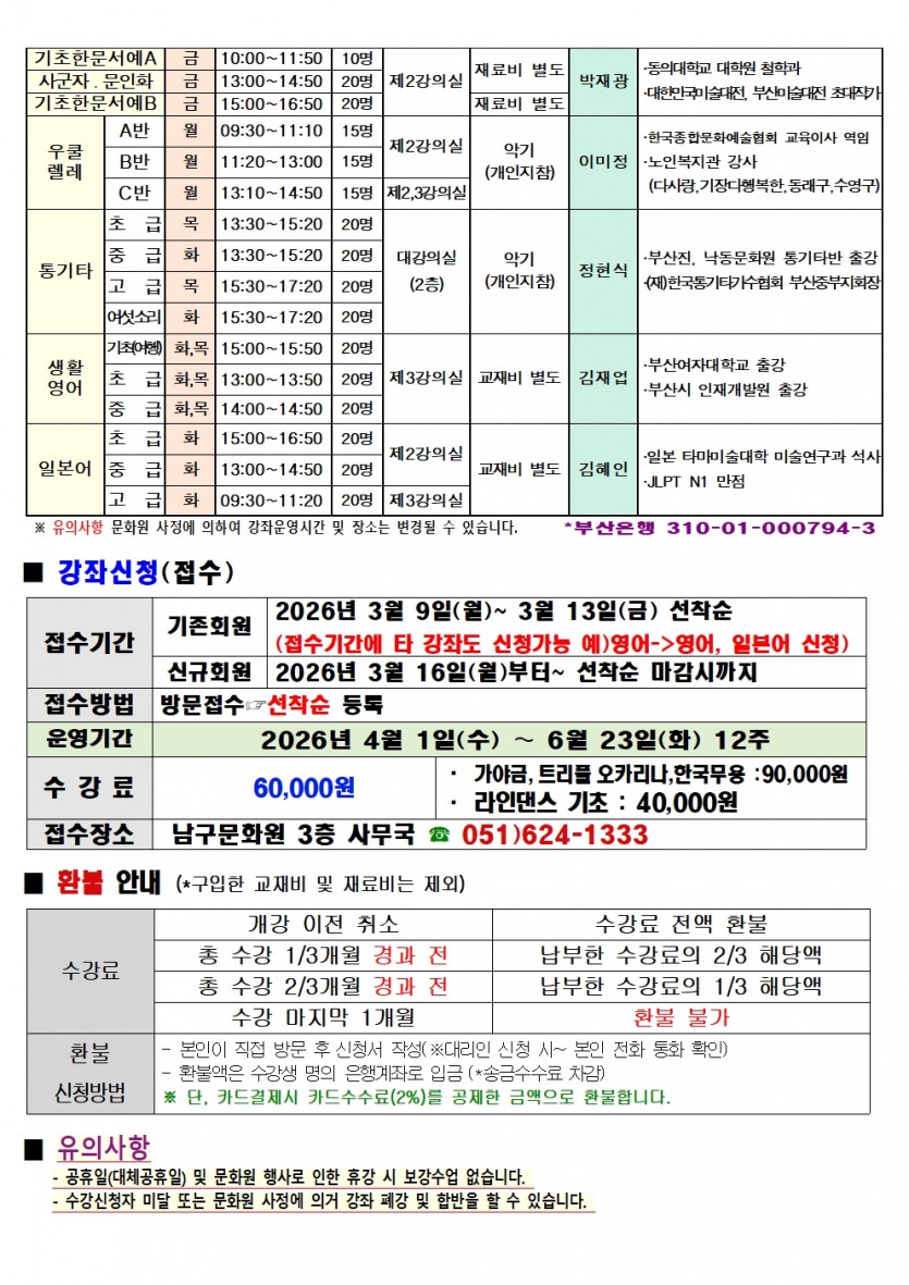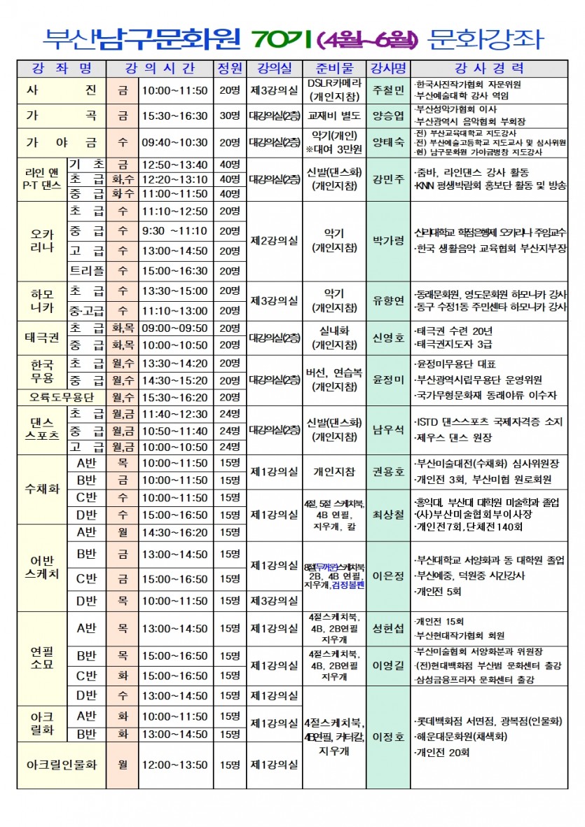 제70기(2026년 4월~6월) 문화강좌 모집안내